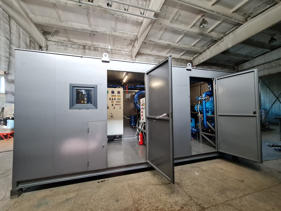 Стандартное исполнение металлический контейнер с рабочим местом оператора внутри установки.