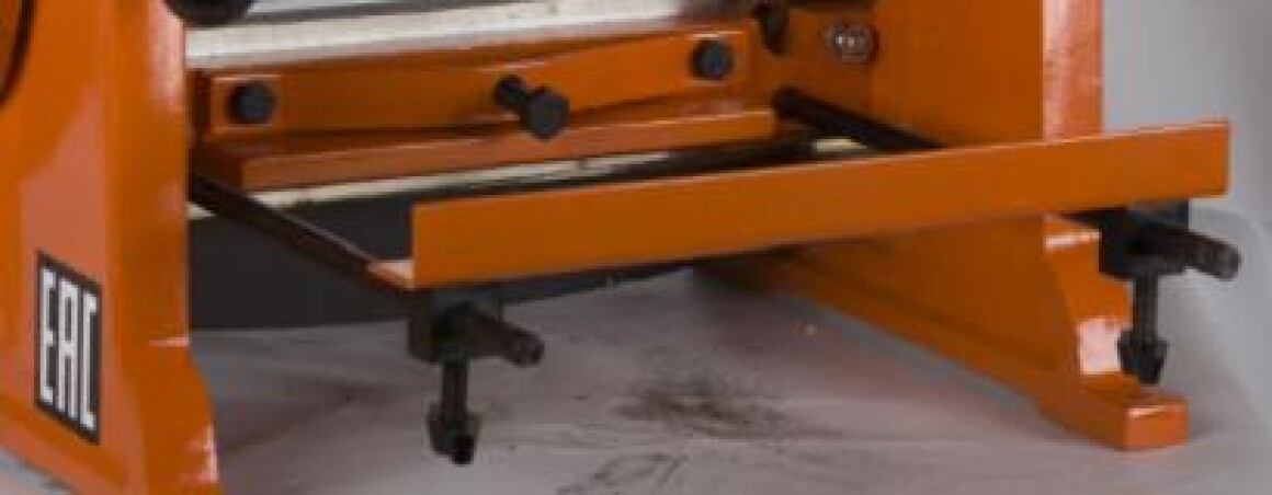 Задняя часть станка имеет ограничитель подачи листа, для резки листа на заданный размер.